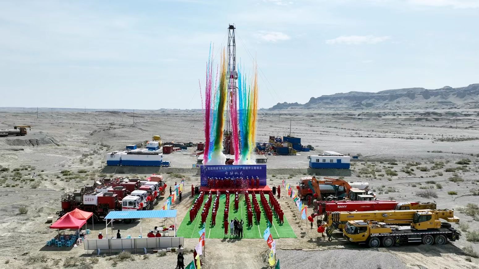 The Karamay Fengcheng No. 1 oil sands mine production capacity improvement project is an important measure of Fucheng Energy to accelerate oil sands development, transform oil sands resource advantages into economic advantages, achieve leapfrog development for pushing for the development strategy of building a comprehensive energy company in the autonomous region. The drilling started as scheduled, marking the Karamay oil sands mine entering a new stage of large-scale development.